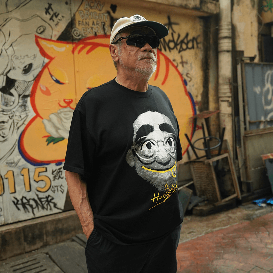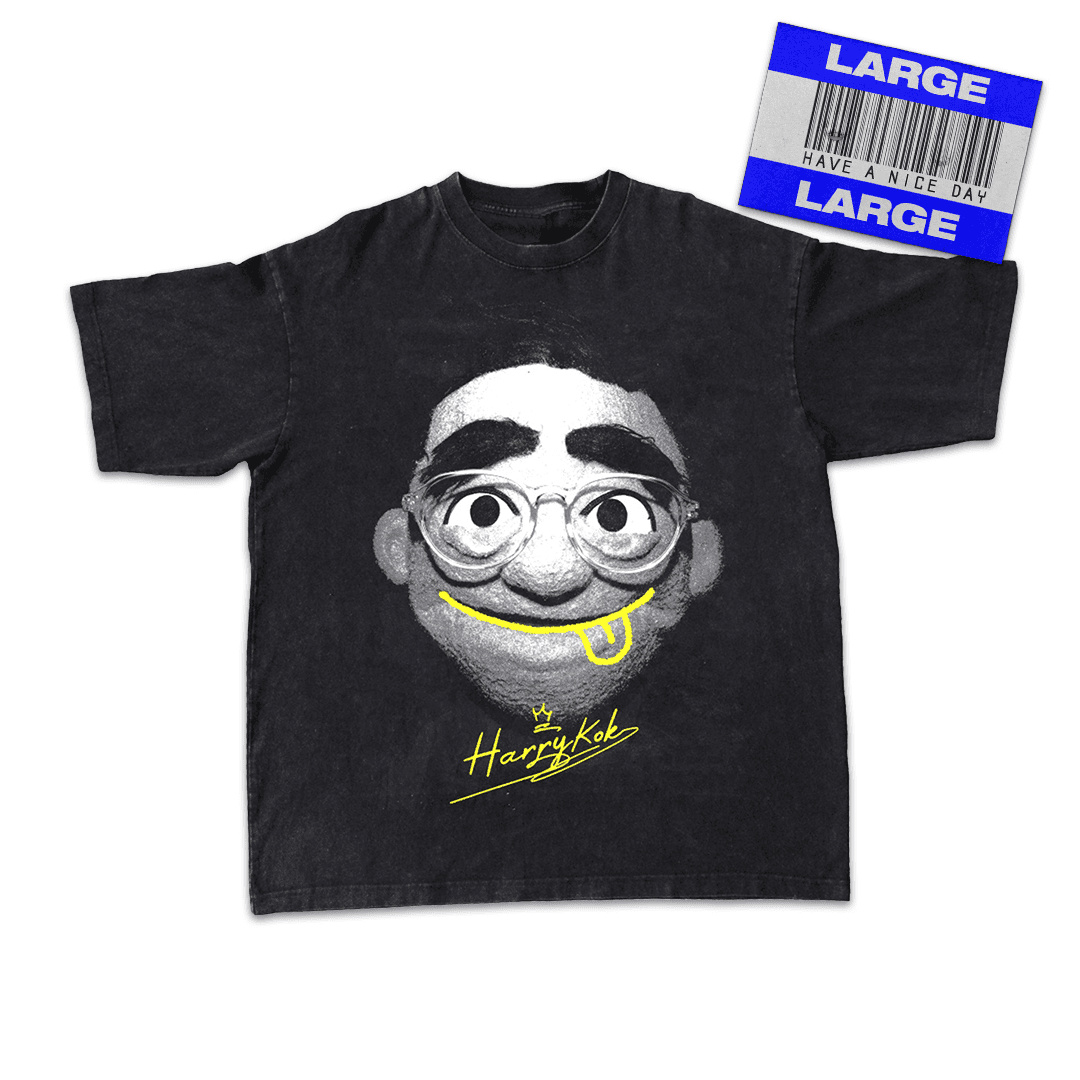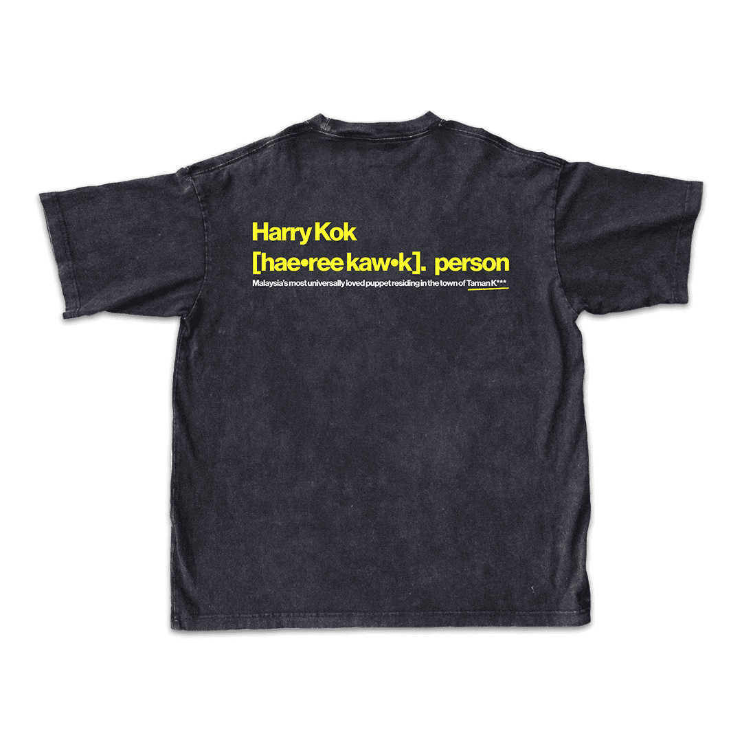 This black graphic tee features Harry Kok, Malaysia’s most universally loved puppet (don’t argue), captured in a bold monochrome print with cheeky pops of yellow. The front showcases Harry’s unmistakable face, wide-eyed, a bit mischievous, and always up to something. Finished with a hand-drawn smile and signature detail. Turn it around and you’ll find a dictionary-style definition that officially confirms what everyone already knows: Harry is a big deal. Designed to feel nostalgic yet contemporary, this tee balances humour, character, and effortless streetwear appeal. Easy to wear, easy to recognise, and guaranteed to get at least one “eh, Harry Kok!” from across the room.